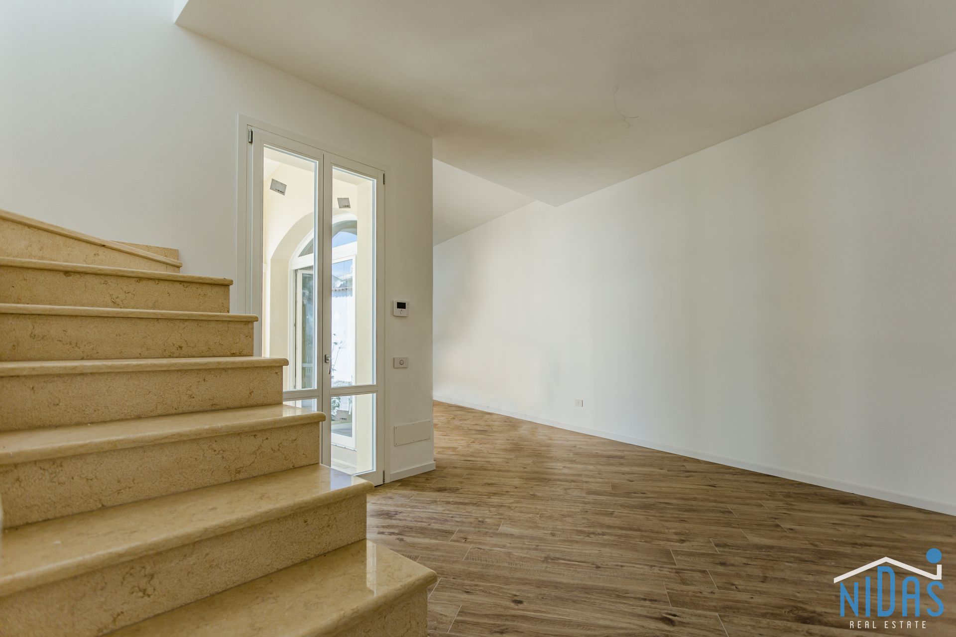 L'immobile si sviluppa su due livelli, con un ampio e luminoso soggiorno a pianta aperta, completo di un angolo cottura funzionale e moderno. Questo ambiente, pensato per la convivialità, è il cuore pulsante della casa, perfetto per accogliere amici e famiglia in un contesto rilassato e elegante. Completa il piano terra la camera padronale e bagno.